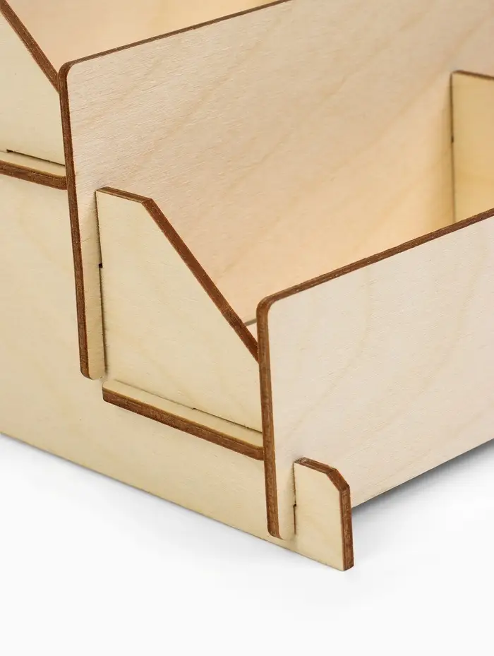 - Материал — фанера толщиной 3 мм, покрытая бежевым цветом, легко очищается и безопасна для использования в офисе или дома.