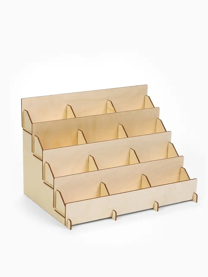 Настольная стойка для буклетов с 12 отделениями — это практичное решение для организации и демонстрации информационных материалов. Размеры 34,5×23×25 см позволяют удобно разместить буклеты формата А6+, а конструкция из фанеры толщиной 3 мм обеспечивает прочность и долговечность. Бежевый цвет гармонично вписывается в любой интерьер, делая использование максимально комфортным и эстетичным.