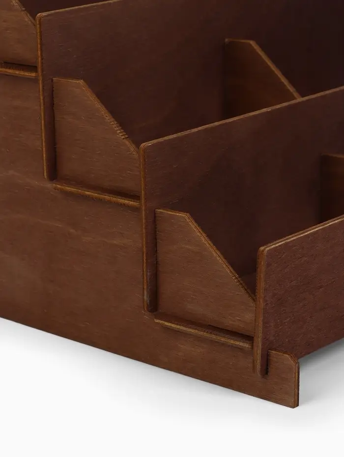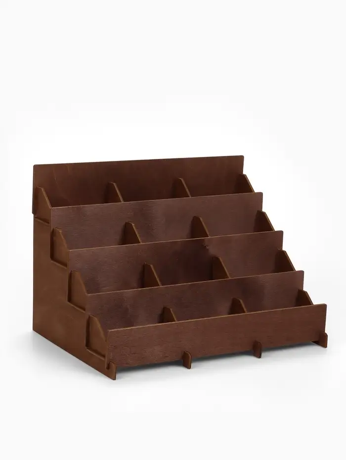 Создайте уют и порядок на своём рабочем столе или полке с помощью стильной подставки для открыток в 12 отсеков. Оформленная в тёплых коричневых тонах, она идеально дополнит интерьер кабинета или гостиной, подчеркивая ваш вкус и внимательность к деталям. Каждый отсек задуман для открыток формата А6+, позволяя компактно разместить поздравительные послания, билеты или визитки, оставив больше пространства для важных документов и устройств.