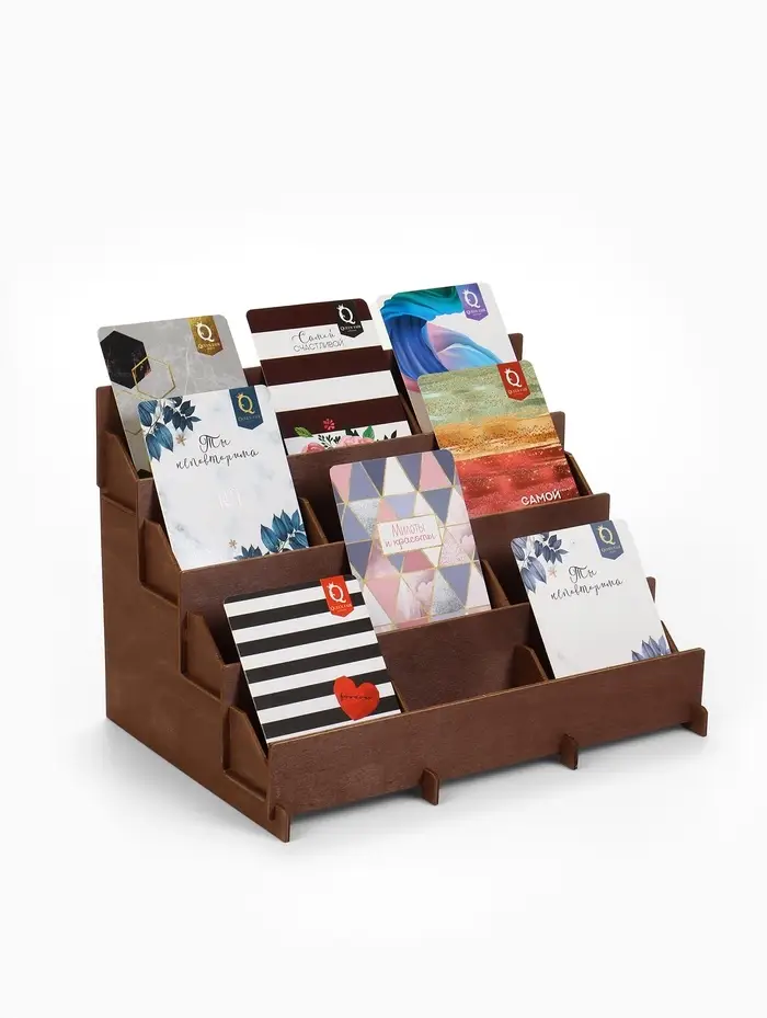 Используйте подставку на рабочем столе, приёмной, кухне или в салоне красоты, распределяя открытки, визитки и пригласительные по отдельным ячейкам и поддерживая порядок на рабочем месте.