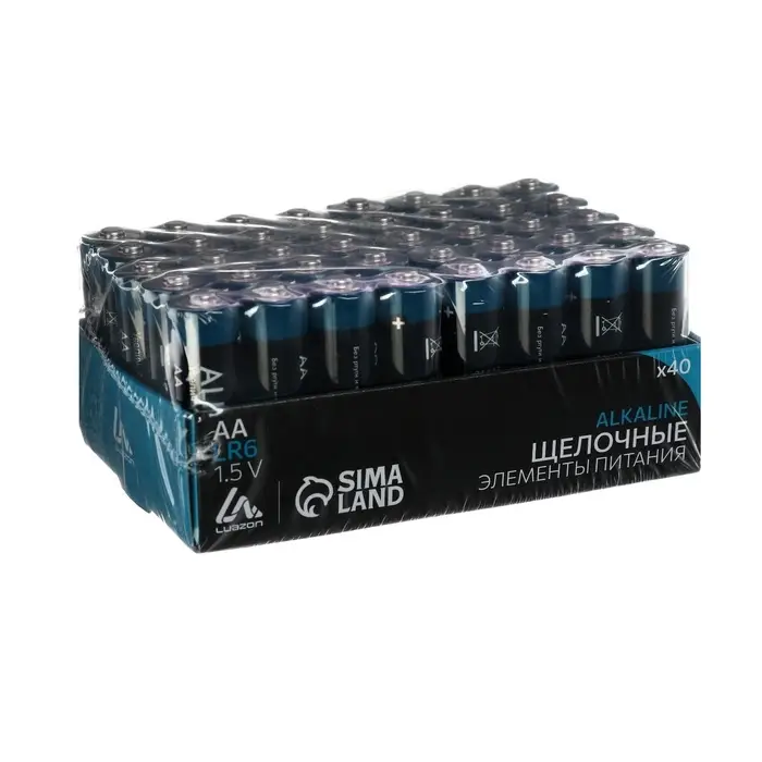 Набор батареек алкалиновых (щелочных) Luazon, AA, LR6, 40 штук
