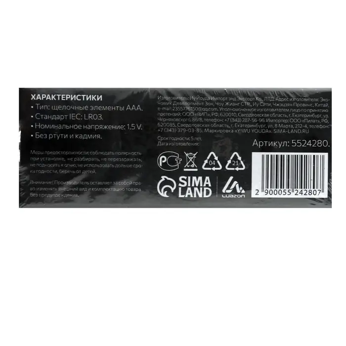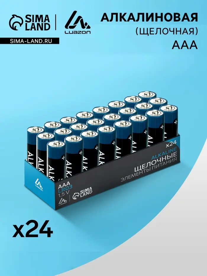 Набор батареек алкалиновых (щелочных) Luazon, AAA, LR03, 24 штуки