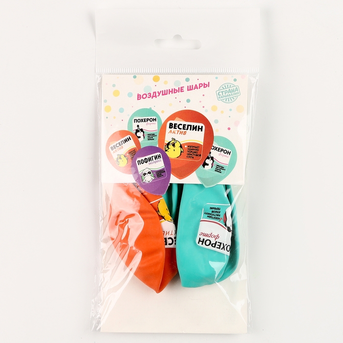 Воздушный шар латексный 12" «Пофигин», 5 шт.