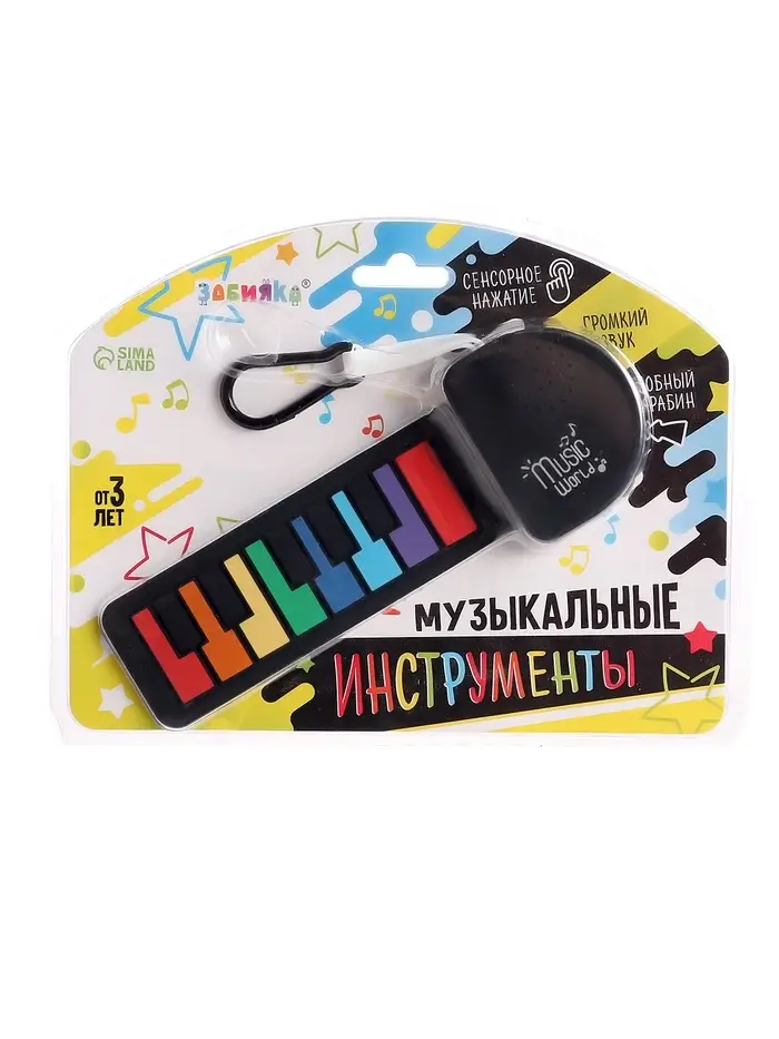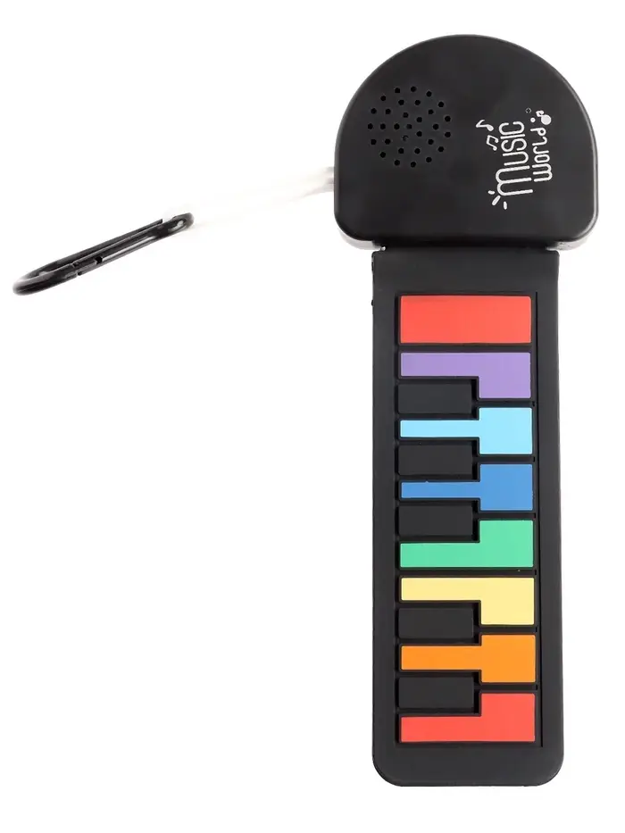 Детское музыкальное пианино станет отличным подарком для малышей от 3 лет. Игрушка поможет ребёнку окунуться в мир звуков и ритмов, а компактный размер и удобный карабин позволят легко брать её с собой в гости или на прогулку.