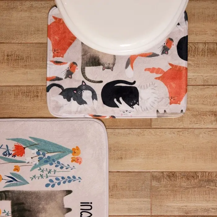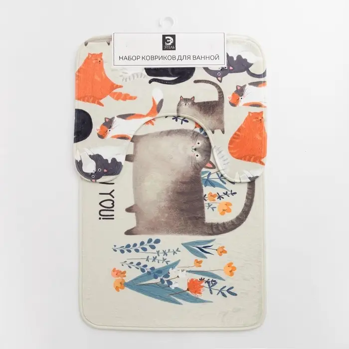 Набор ковриков для ванной Этель «Котики», 2 шт., 80×50 см, 50×40 см, велюр