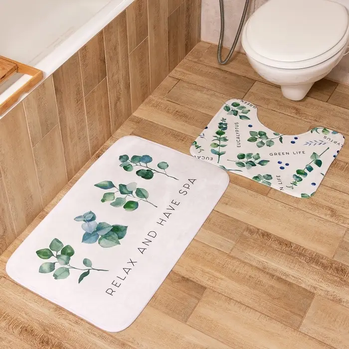 Коврик для ванной «Этель. Эвкалипт», 80×50 см, велюр