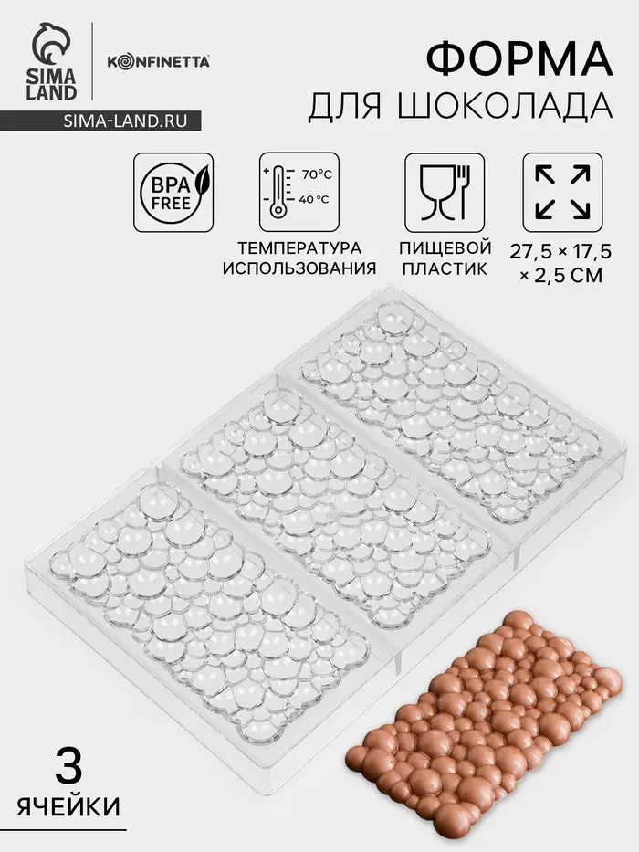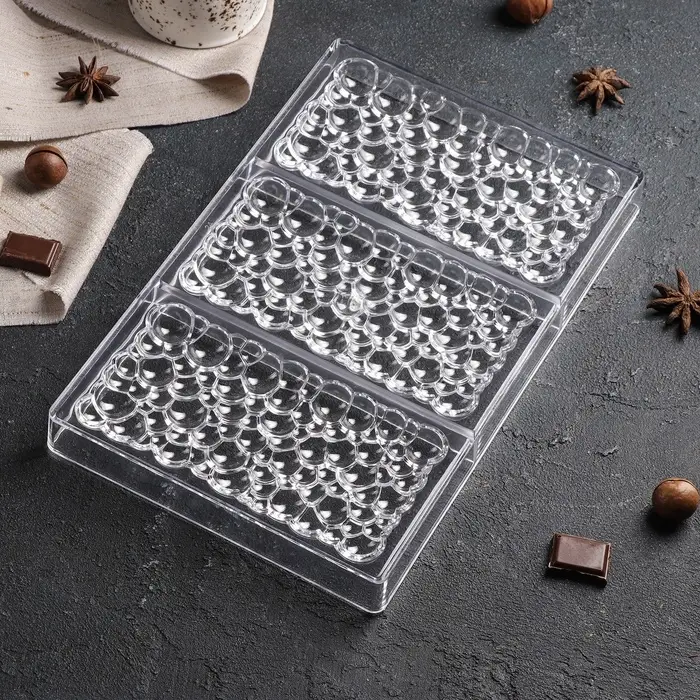 Форма для шоколада KONFINETTA «Воздушный», пластик, 3 ячейки, 27.5×17.5×2.5 см, ячейка 15.3×7.5×0.8 см, прозрачная