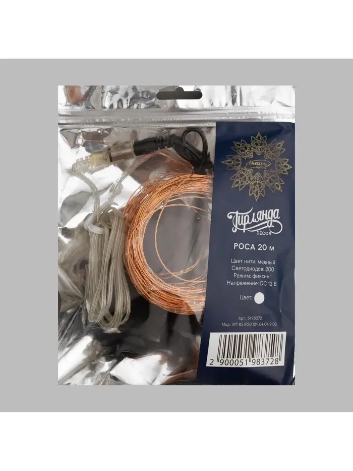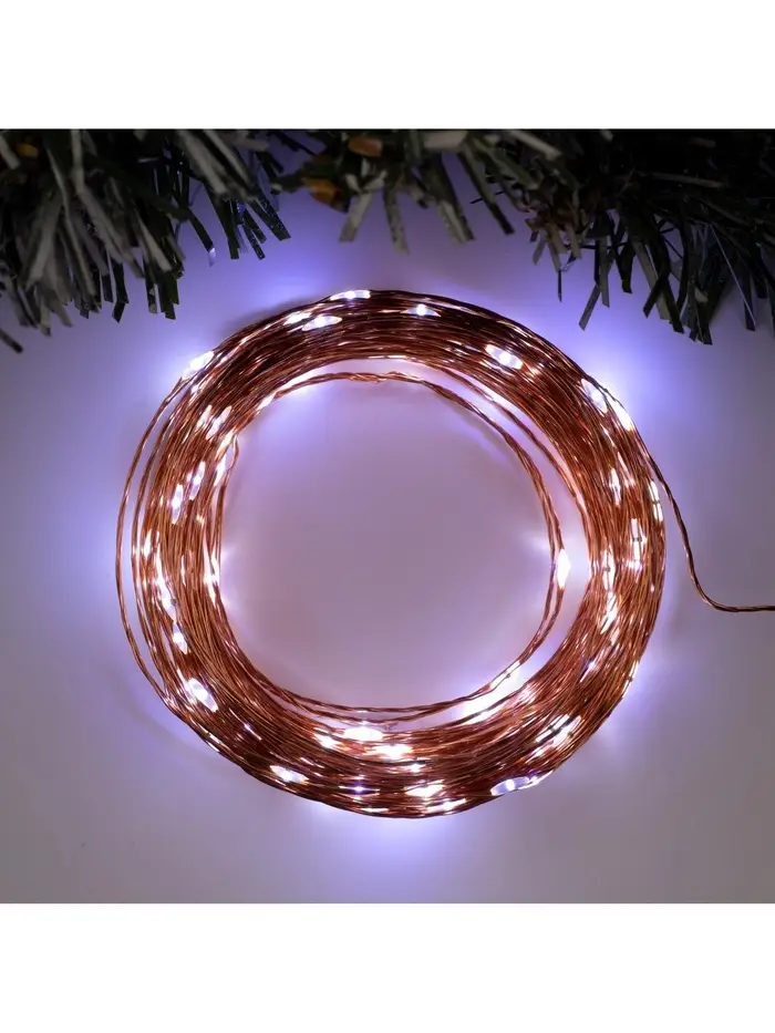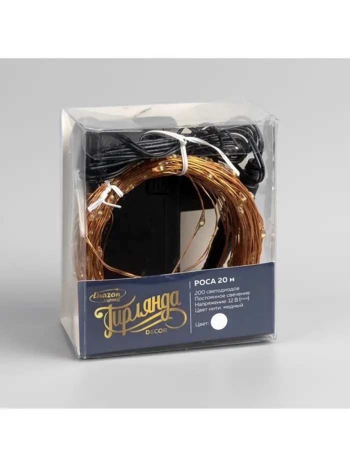 Гирлянда «Нить» 20 м, роса, IP20, медная нить, 200 LED, свечение белое, 12 В