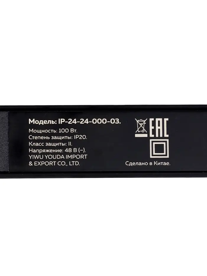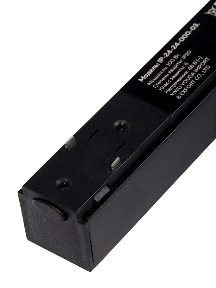 Блок питания выполнен в стильной черной цветовой гамме, что позволяет ему гармонично вписаться в любой интерьер. Благодаря мощности 100 Вт и выходному напряжению 48 В, он обеспечивает стабильную работу трековых светильников, гарантируя их бесперебойное функционирование.