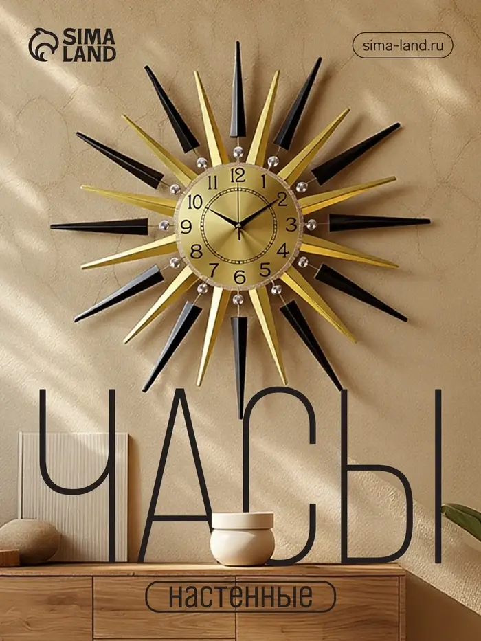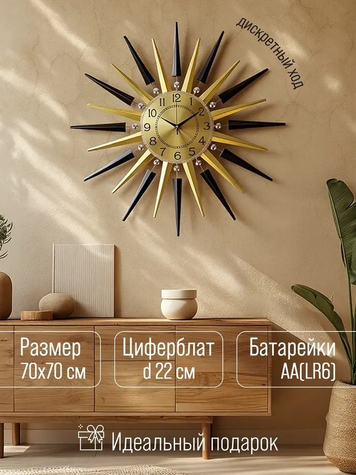 Часы настенные — функциональный элемент декора, который будет уместно смотреться в квартирах, офисах, приемных, вестибюлях, залах ожидания. Они станут отличным подарком на любой праздник.
