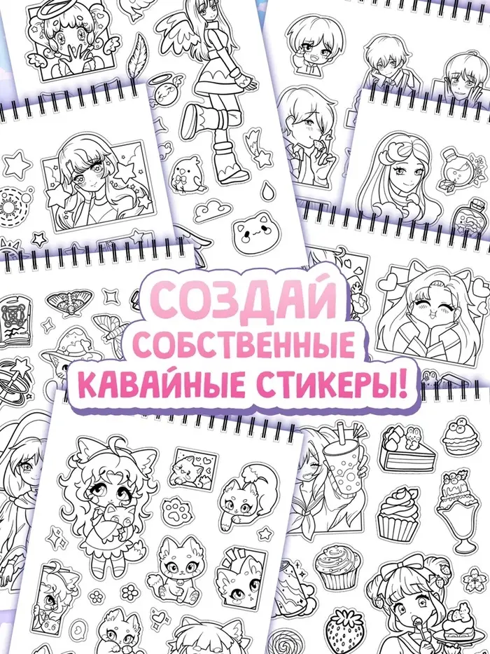 Стикеры - раскраски Kawaii, более 250 наклеек аниме