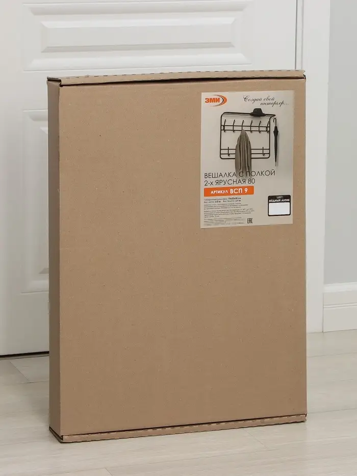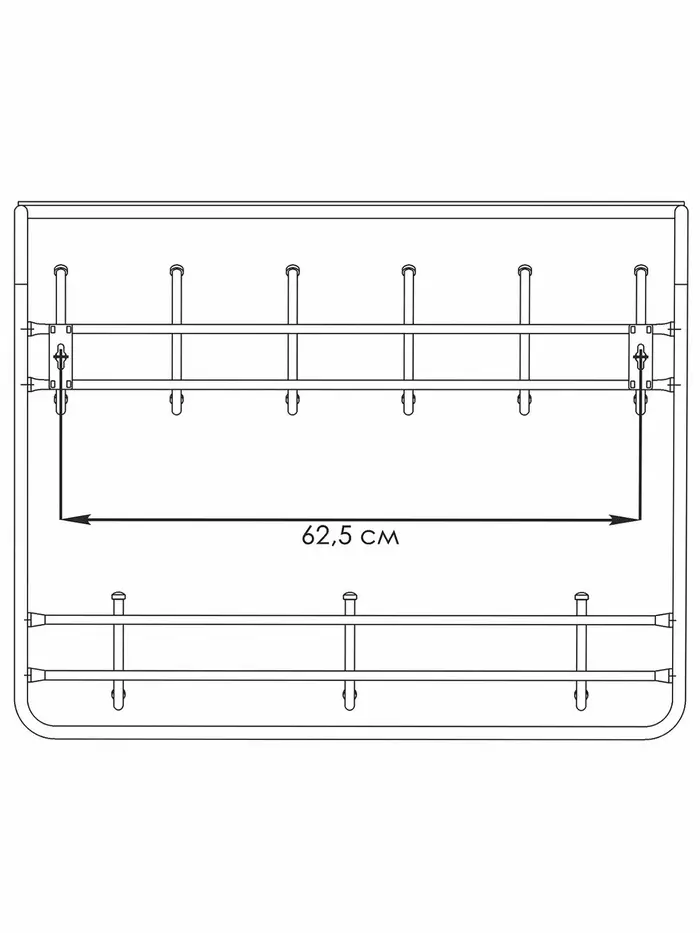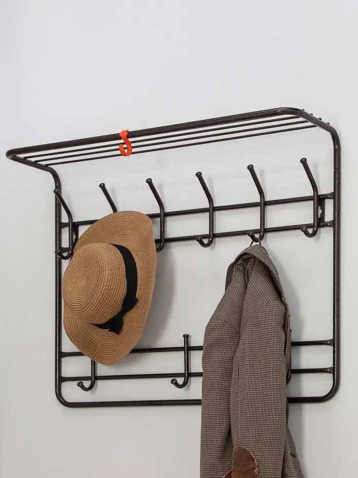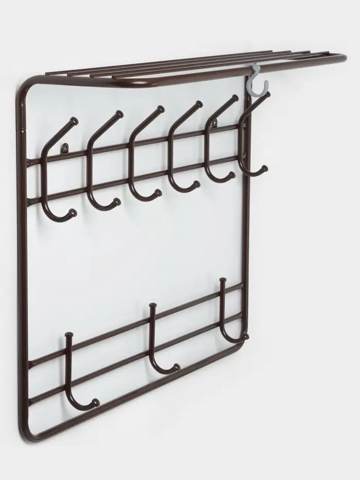 Вешалка настенная с полкой, 9 крючков, 2 яруса, 73×22×58 см, коричневая