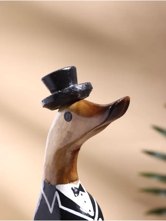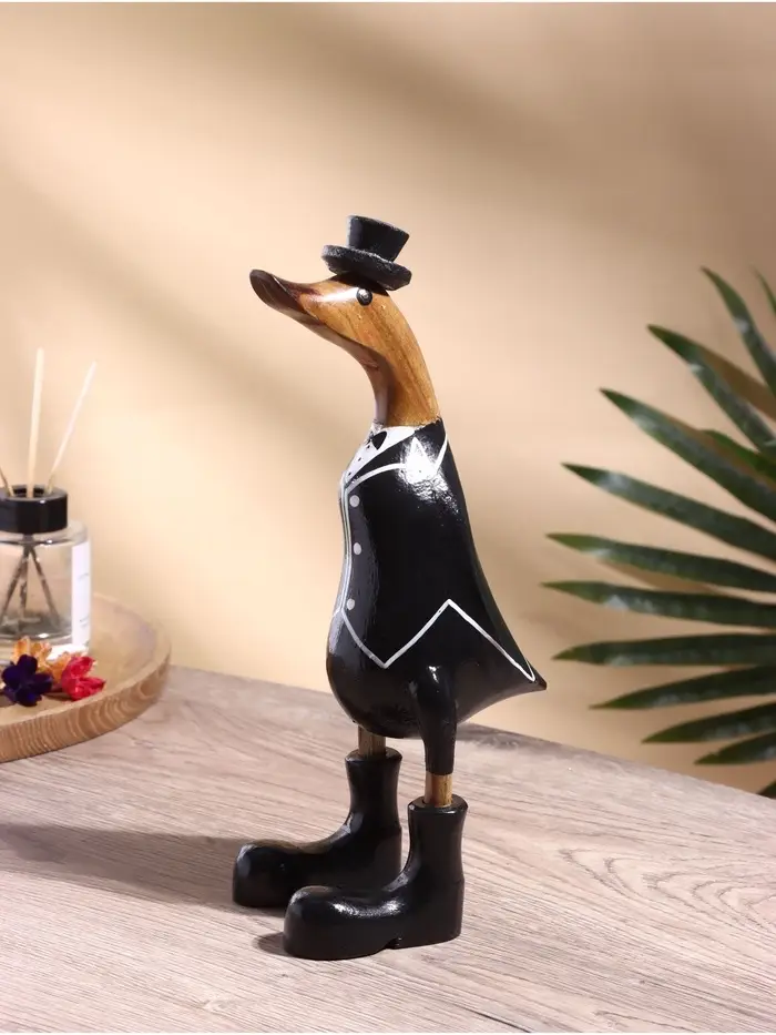 Элегантность и юмор для вашего интерьера! Деревянная утка во фраке — это стильный арт-объект, который привнесет в обстановку ноту британского шика и доброй иронии. Фигурка ручной работы станет ярким акцентом в кабинете, гостиной или на полке коллекционера.