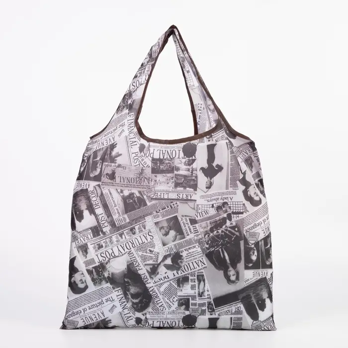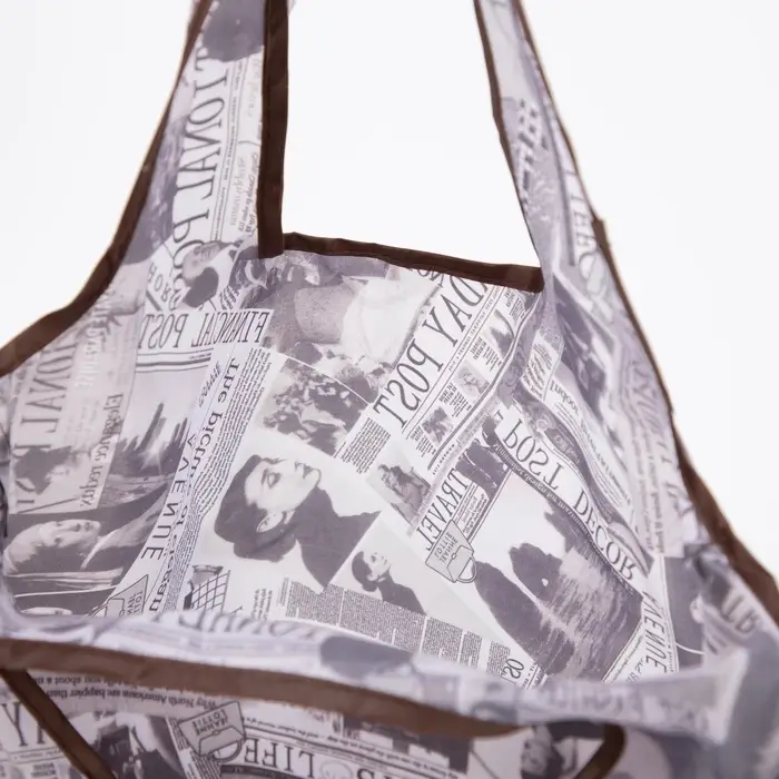 Представляем вашему вниманию складную бежевую сумку без застежки—идеальную спутницу для покупок. Этот удобный аксессуар для женщин, оформленный в тематике "буквы, письма, газеты", сочетает в себе практичность и элегантность.