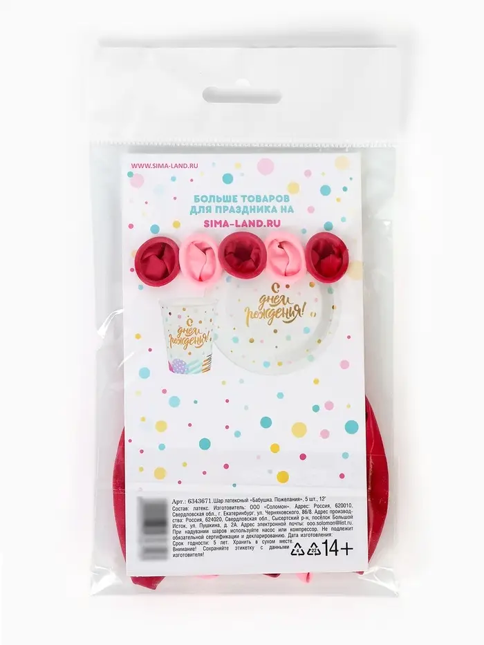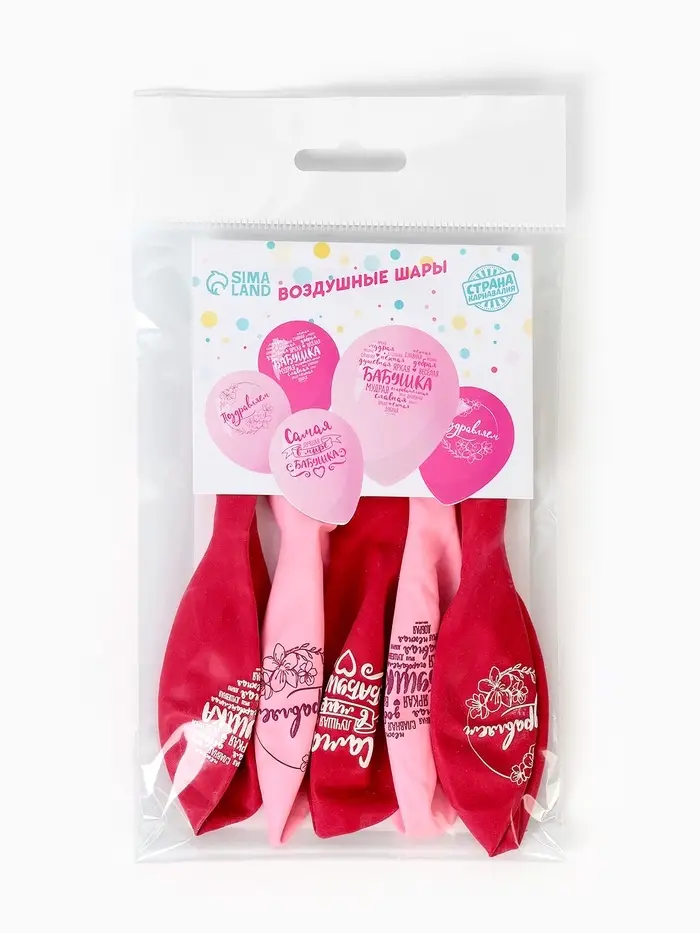 Воздушные шары латексные 12" «Бабушка. Пожелания», 5 шт.