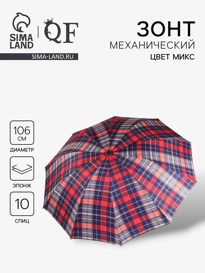 Зонт механический «Клетки», эпонж, 4 сложения, 10 спиц, R=53/61 см, d=106 см, МИКС