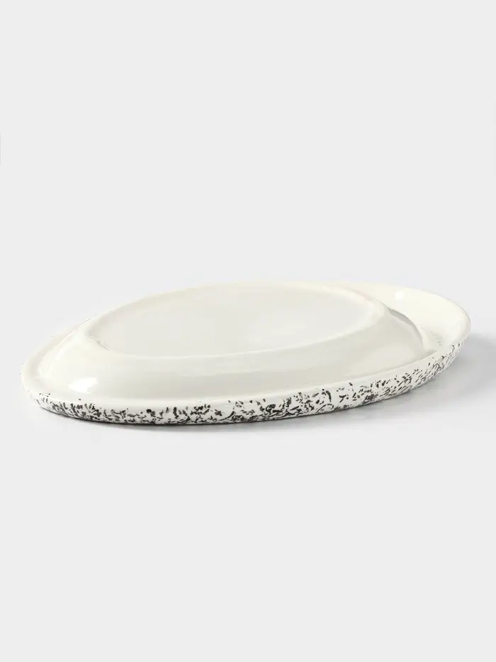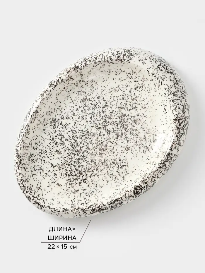Блюдо для подачи Керамика ручной работы «Овал Крошка», 22×15×3 см, Иран, белое в крапинку