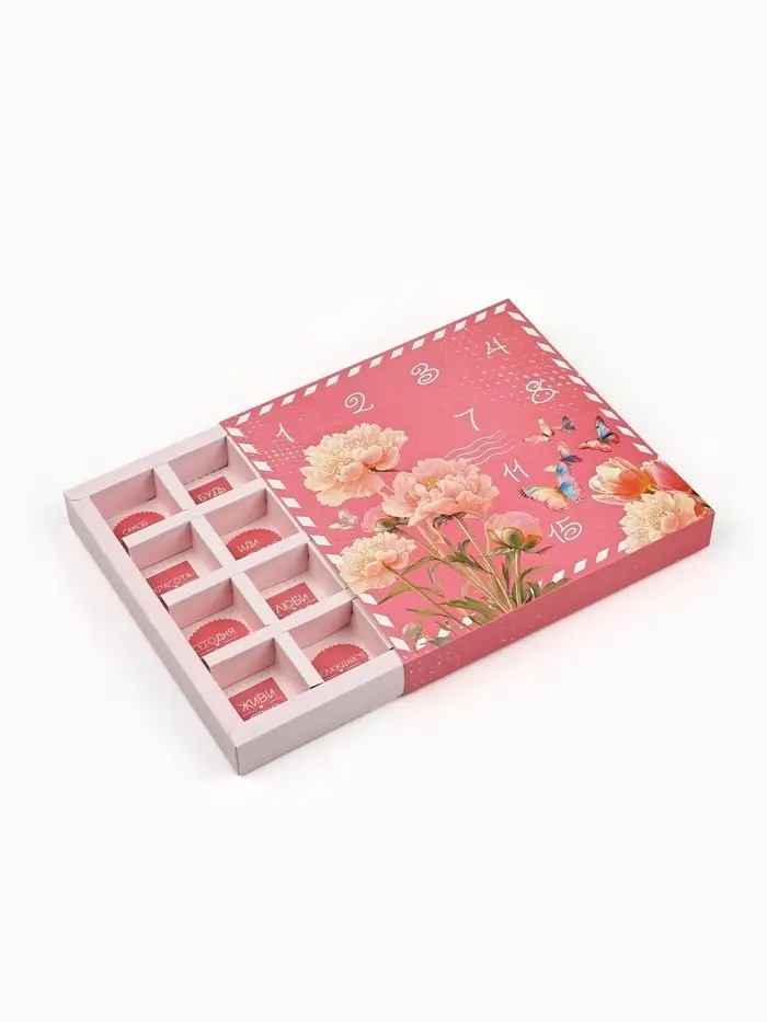Коробка-адвент под 16 конфет, «Цветочная почта», 19×19×2.5 см, кондитерская упаковка