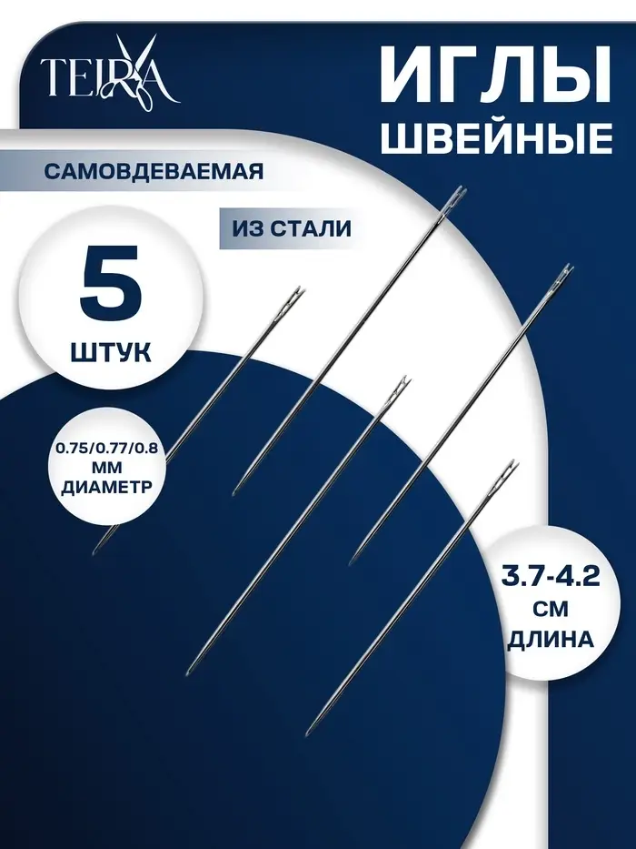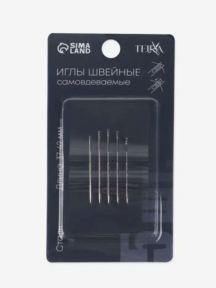 Иглы швейные TEIRA, самовдеваемые, d=0.7/0.7/0.8 мм, 3.7-4.2 см, набор 5 шт.