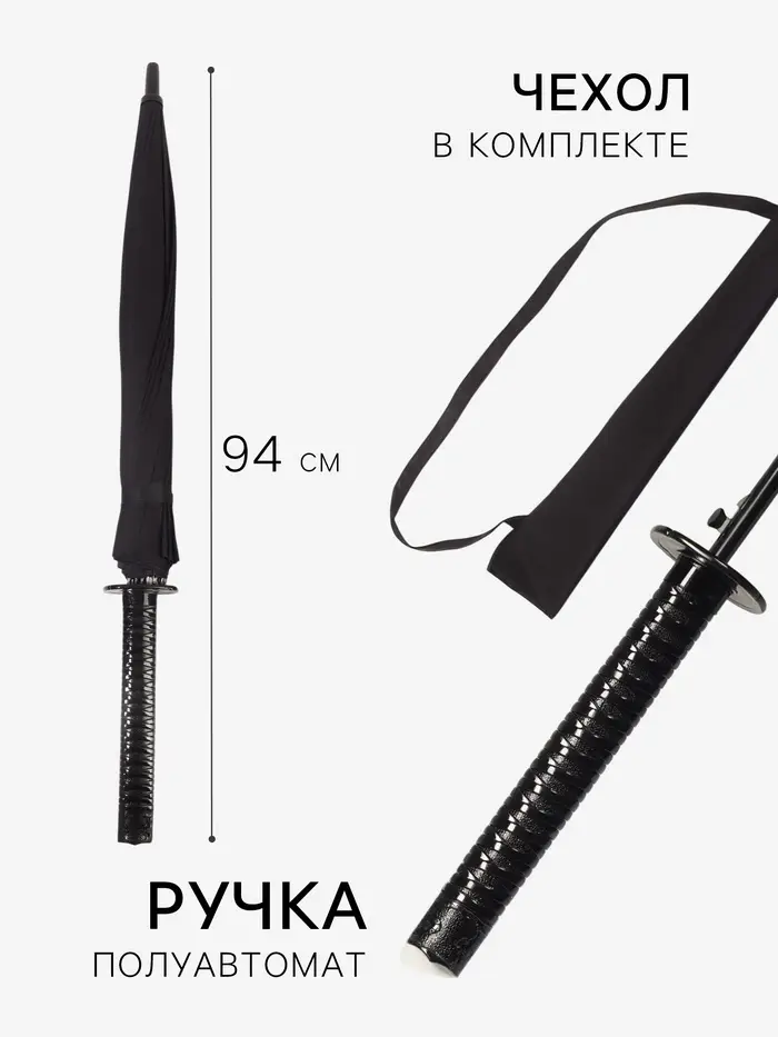 Зонт - трость полуавтоматический «Катана», эпонж, 16 спиц, R=51/60 см, d=102 см, чёрный