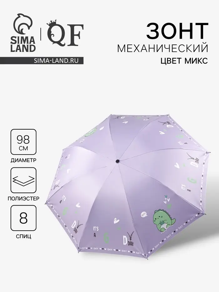 Зонт механический «Динозавр», 4 сложения, 8 спиц, R=49/56 см, d=98 см, МИКС