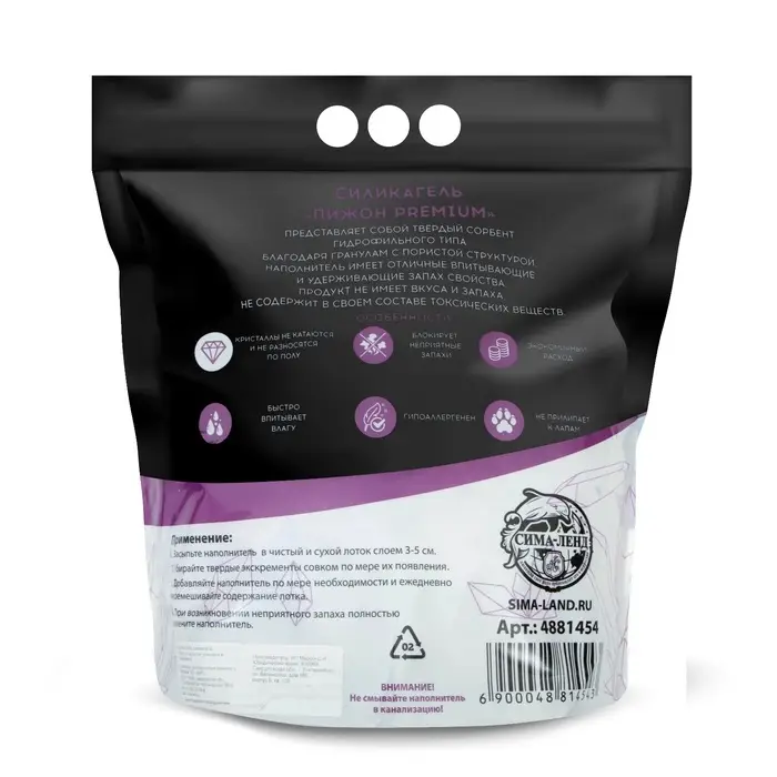 Силикагелевый наполнитель изготовлен из природных материалов, что делает его безопасным для здоровья вашего питомца. Он не пылит, не оставляет следов на лапах животного и не вызывает аллергических реакций.