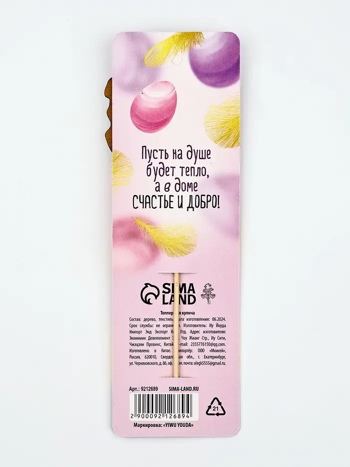 Топпер деревянный для украшения кулича «Цыплёнок» на пасху, 6.2×6.2 см