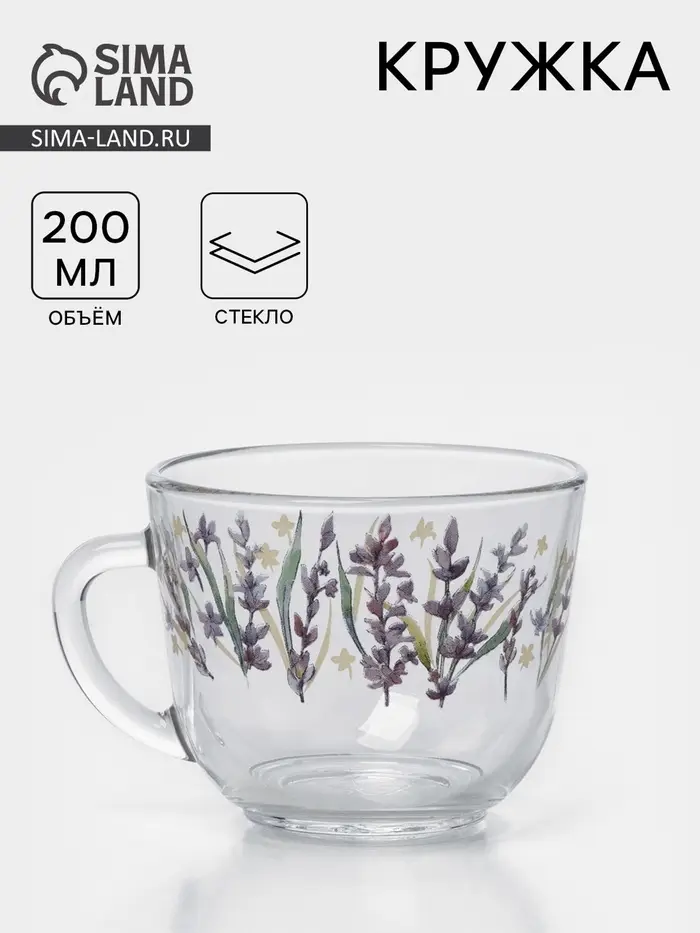 Кружка «Лаванда», 200 мл, стекло, прозрачная