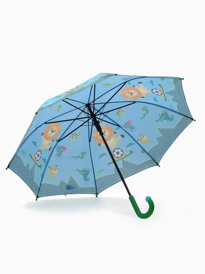 Зонт - трость детский «Животные», полуавтоматический, R=43/50 см, d=86 см, голубой
