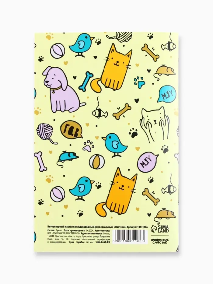 Ветеринарный паспорт международный универсальный «Паттерн»