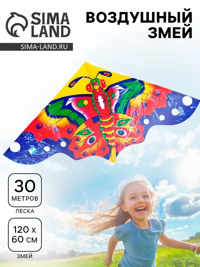 Воздушный змей «Цветная бабочка», с леской