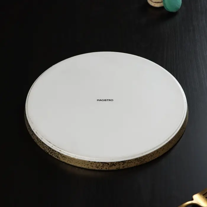 Блюдо фарфоровое сервировочное с бортиком Magistro Poursephona, d=25.5 см, бежевый