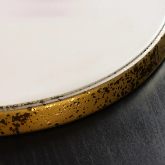 Посуда серии Magistro Poursephona — это современная фарфоровая посуда. В оформлении серии превалируют два цвета – бежевый оттенок фарфора и роскошное золото в виде широкой окантовки предметов. Идеально подходит как для формального обеда, так и для торжеств по особым случаям. Лаконичные формы, золотая окантовка, разноцветные вкрапления придают изделиям из фарфора одновременно необычный и современный вид.