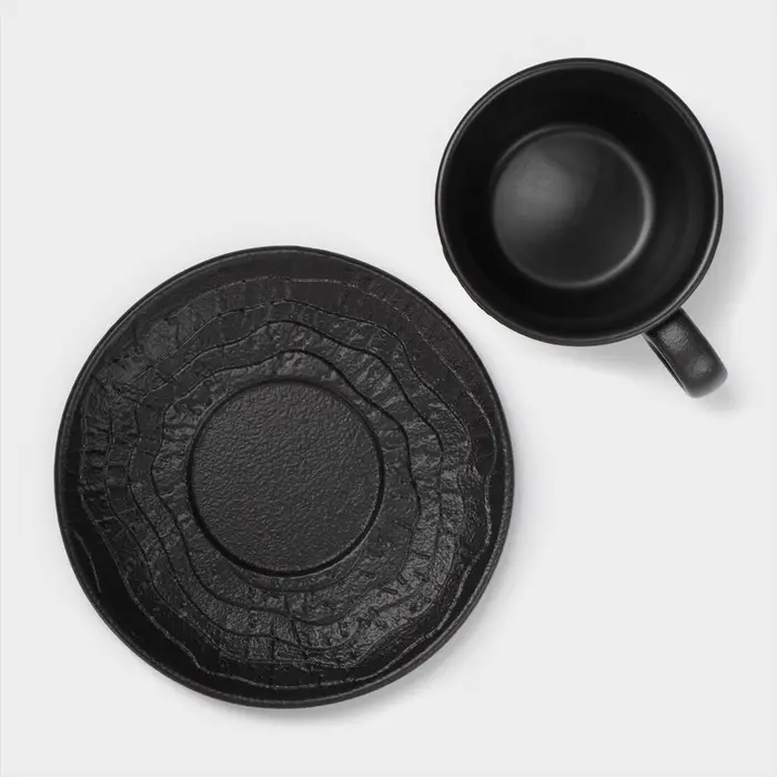 Чайная пара Magistro Black style, 2 предмета: чашка 200 мл, блюдце d=14.5 см, фарфор, чёрная