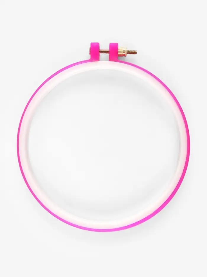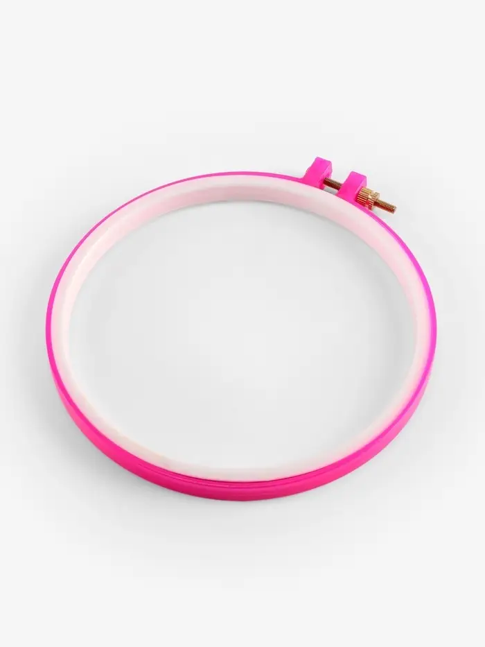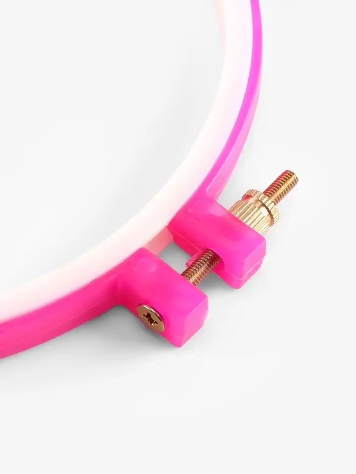 Эти пластиковые пяльцы просты и удобны в обращении: они лёгкие, плотно зажимают ткань и обеспечивают нужное натяжение, не деформируя полотно. Приспособление широко используется для вышивки крестиком или гладью.