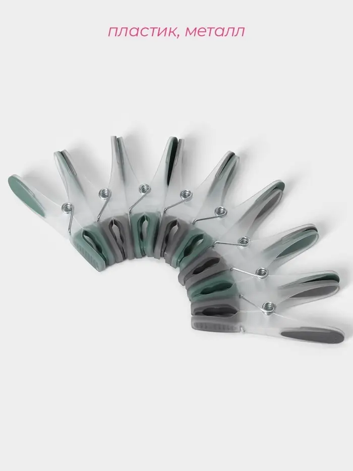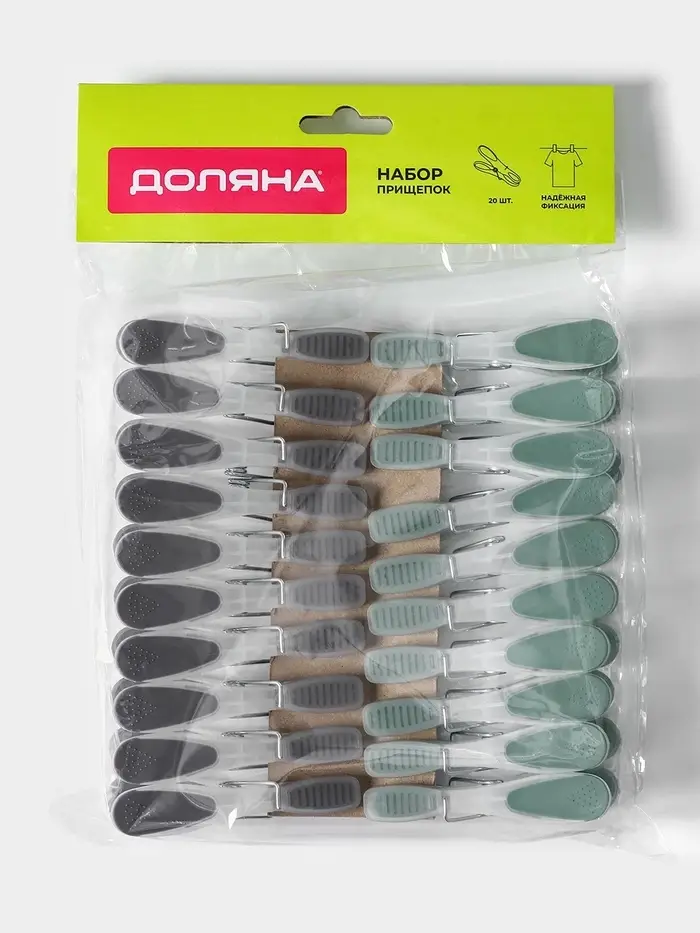 Набор прищепок бельевых Доляна, 20 шт., пластик, 8.4×1.6 см, серо-зелёный