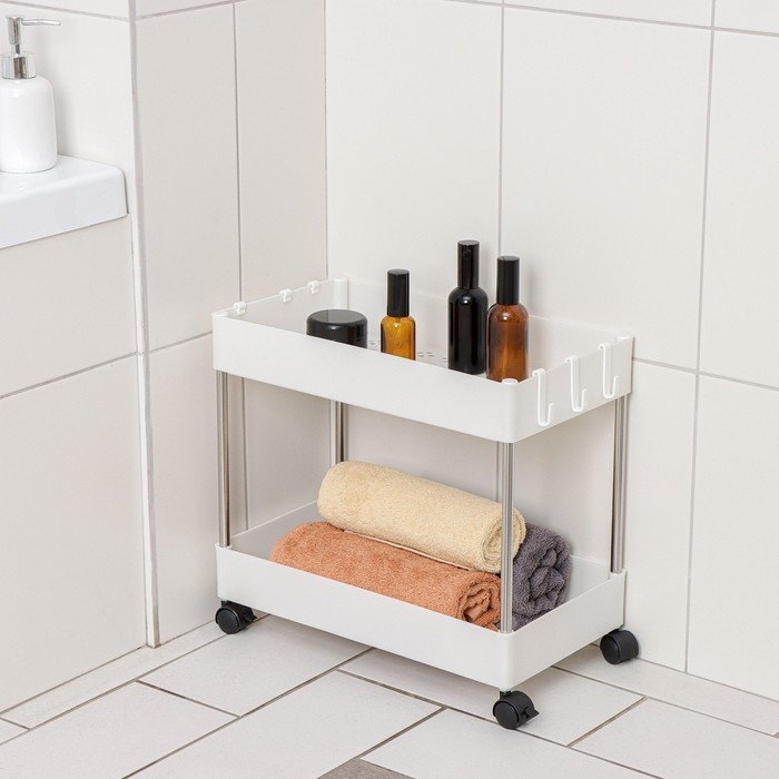 Этажерка 2-х ярусная на колёсах, 40×13×31 см, цвет белый