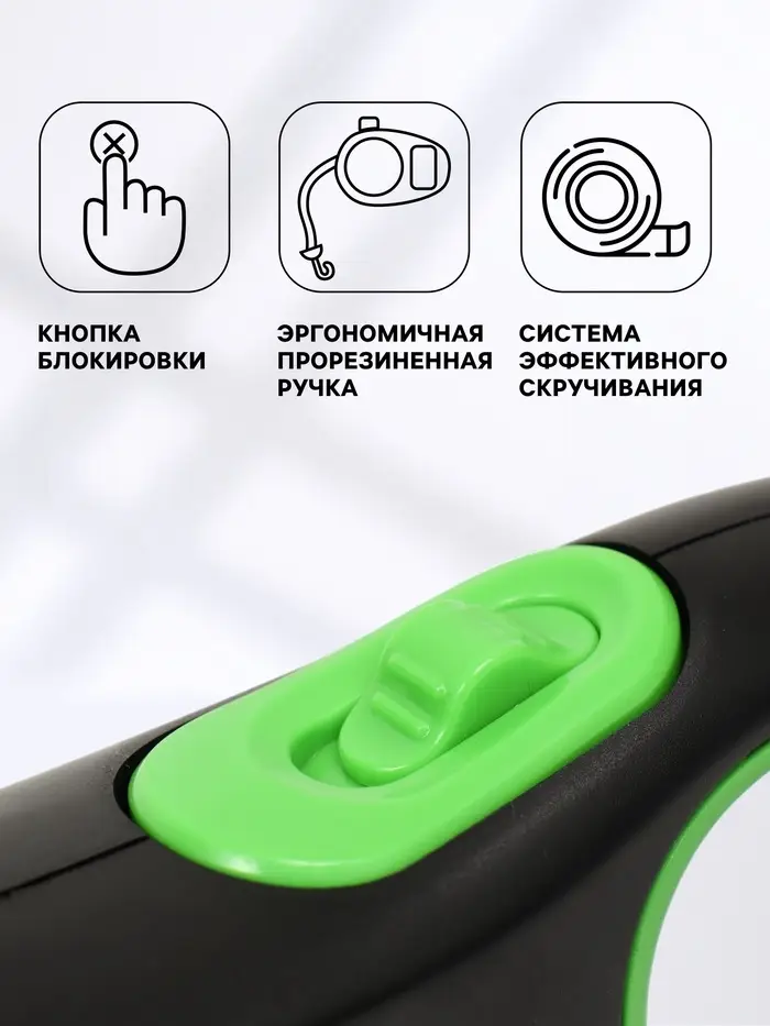 Система эффективного скручивания поводка позволяет удобно и быстро управлять длиной поводка, не давая ему запутываться. Кроме того, рулетка оснащена кнопкой блокировки, которая позволяет фиксировать длину поводка на нужном месте.