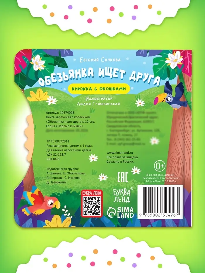 Книга картонная с колёсиком «Обезьянка ищет друга», 12 стр.