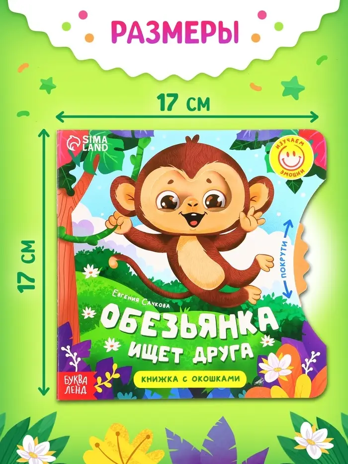 Картонная книжка с колесиком «Обезьянка ищет друга!» — это увлекательный способ познакомить малыша с миром эмоций. Через историю об обезьянке ребёнок узнает, как выглядят и называются разные чувства, а интерактивное колесико поможет подобрать подходящую эмоцию к каждой ситуации в рассказе. Книга станет отличным помощником в развитии эмоционального интеллекта у детей от 1 года.