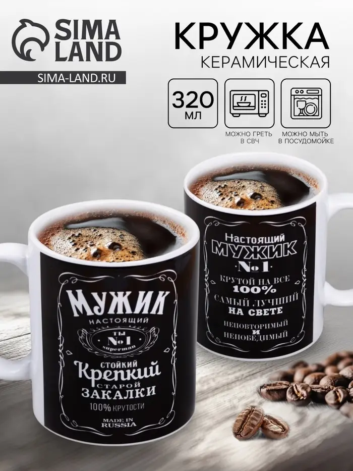 Керамическая кружка «Мужик настоящий» — сдержанное, но выразительное напоминание, сочетающее повседневную практичность. Подходит для утреннего кофе, вечернего чая или как символ внимания.
