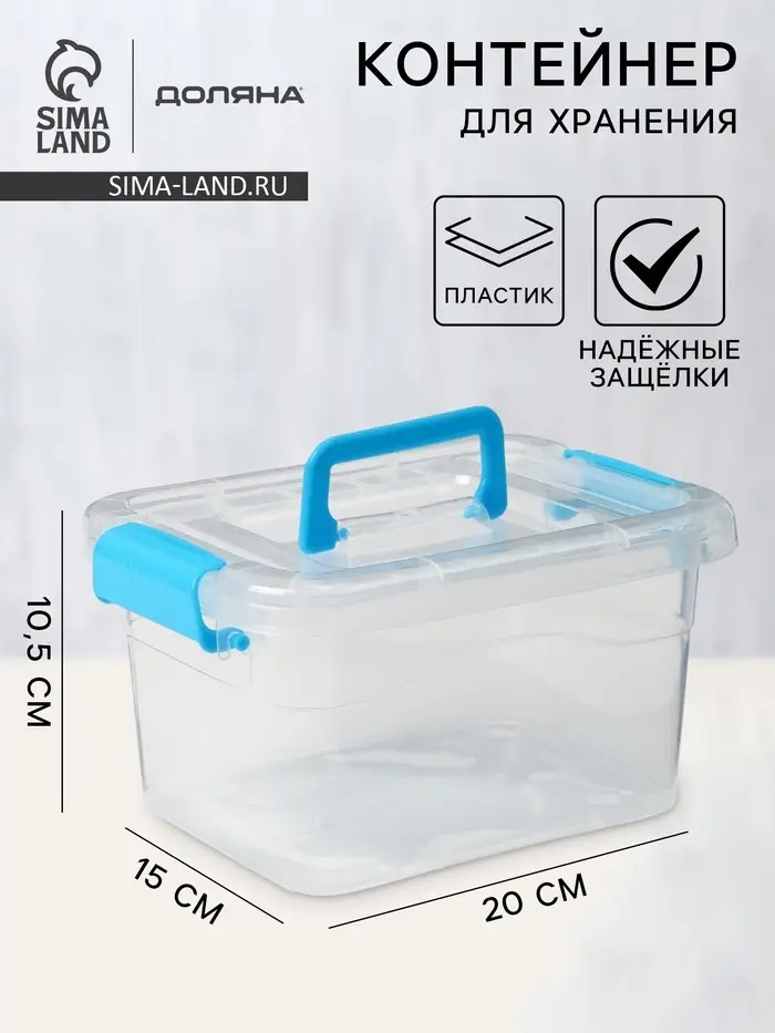 Контейнер для хранения Доляна, 20×15×10.5 см, крышка с ручкой на защёлке, МИКС