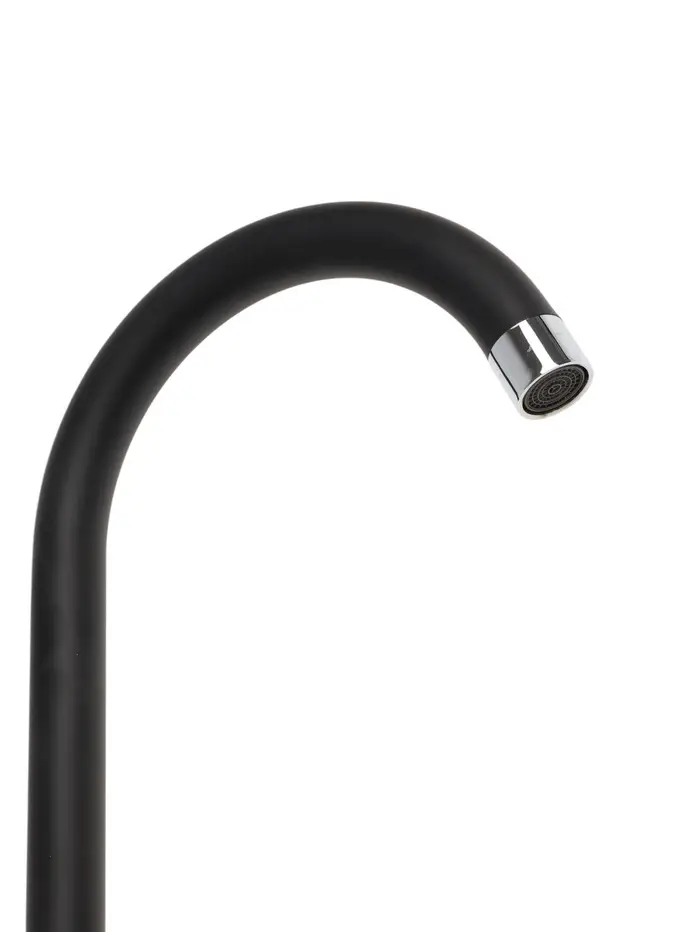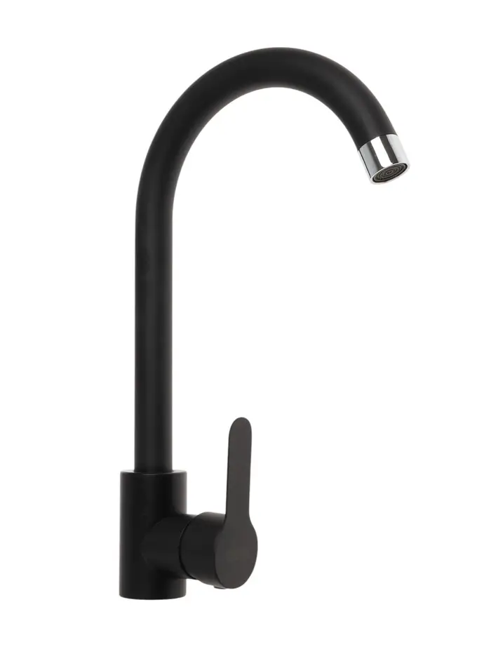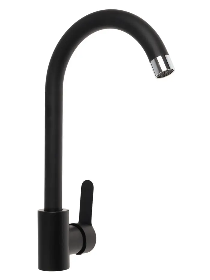 Однорычажный смеситель для кухни, черный камень — цельный смеситель из черной нержавеющей стали. Высокий поворотный излив длиной 200 мм.