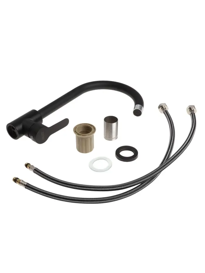Смеситель для кухни ZEIN Z2388, картридж керамика 40 мм, нержавеющая сталь, камень-черный