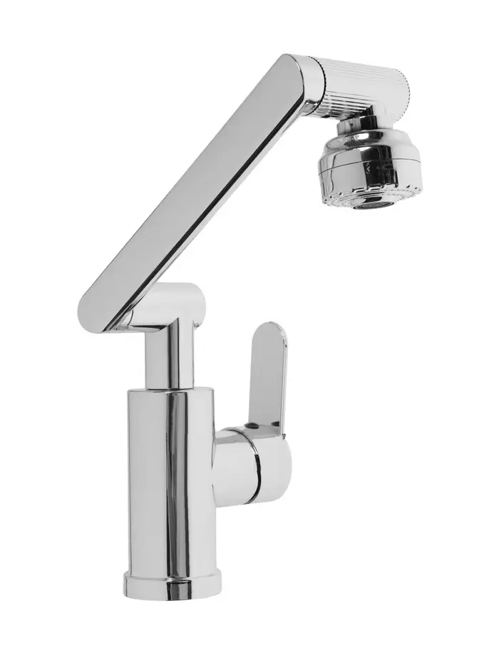 Данный смеситель имеет излив, который поворачивается и крутится в разные стороны на 360 градусов.
