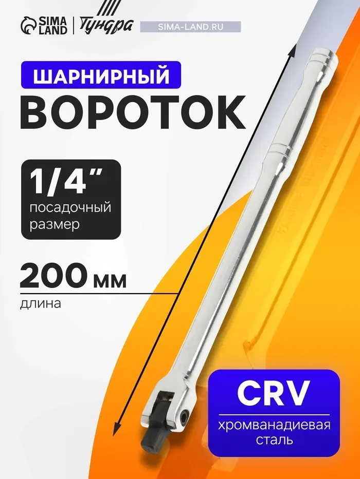 Шарнирный вороток из хромванадиевой стали с посадкой 1/4 дюйма и длиной 200 мм. Компактный и надежный инструмент для точных работ.