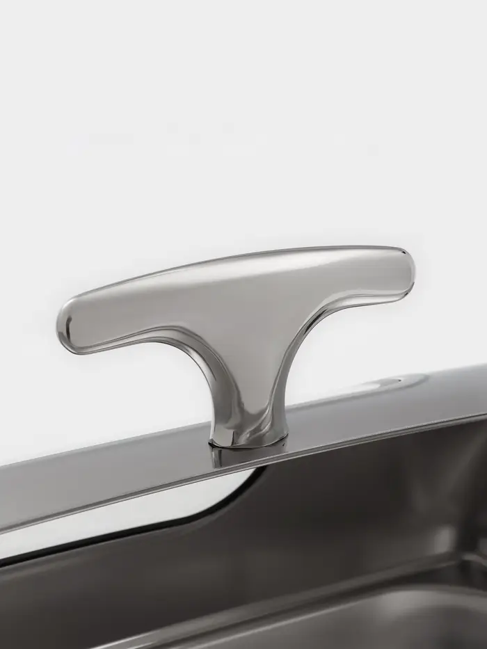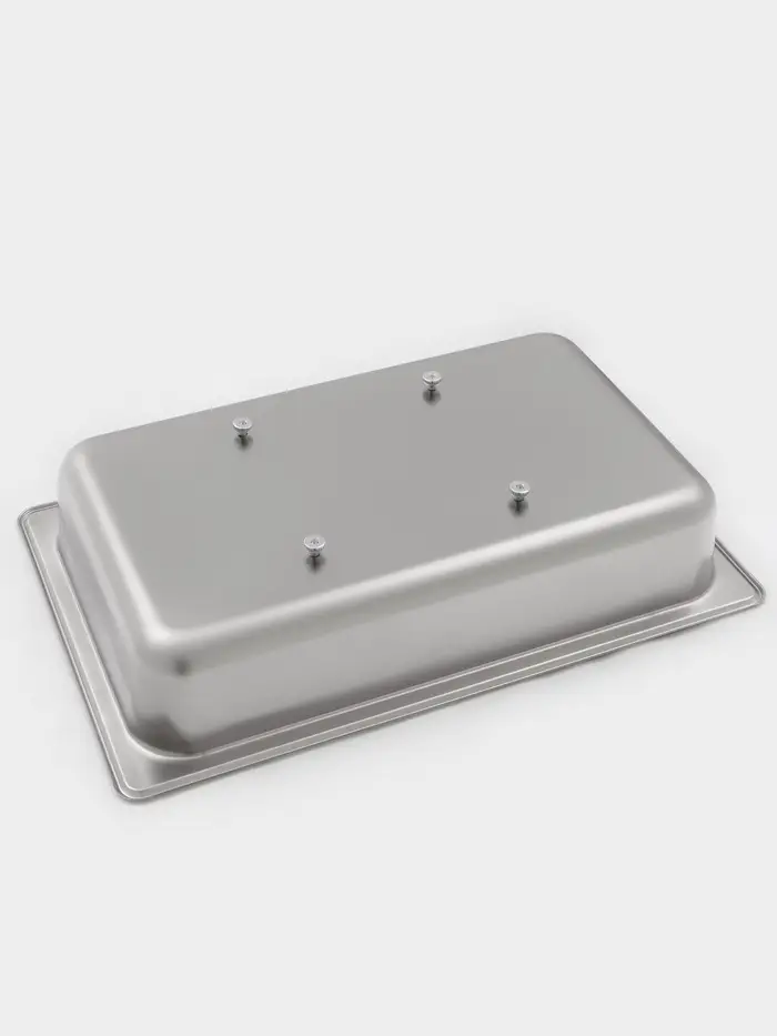 Мармит выполнен из высококачественной нержавеющей стали, что обеспечивает не только долговечность, но и стильный внешний вид. Его разборная конструкция и съёмная крышка делают использование и хранение максимально удобными.