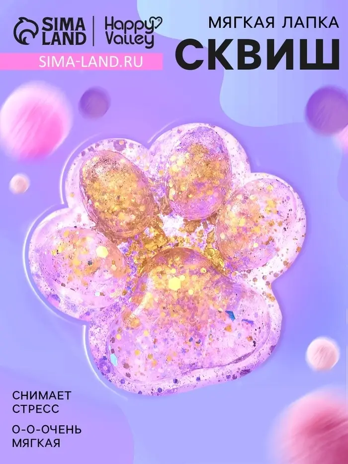 Сквиш антистресс - игрушка Funny toys «Мяк-жмяк. Лапка», с глиттером