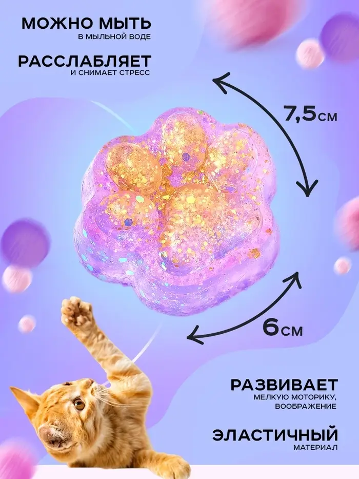Игрушка-антистресс «Мяк-жмяк. Лапка» — это мягкая мялка в форме лапки, созданная для снятия стресса и улучшения настроения. Она станет отличным компаньоном для детей и взрослых, помогая отвлечься от забот и расслабиться. Яркий цвет и глиттеры делают её особенно привлекательной для детей.