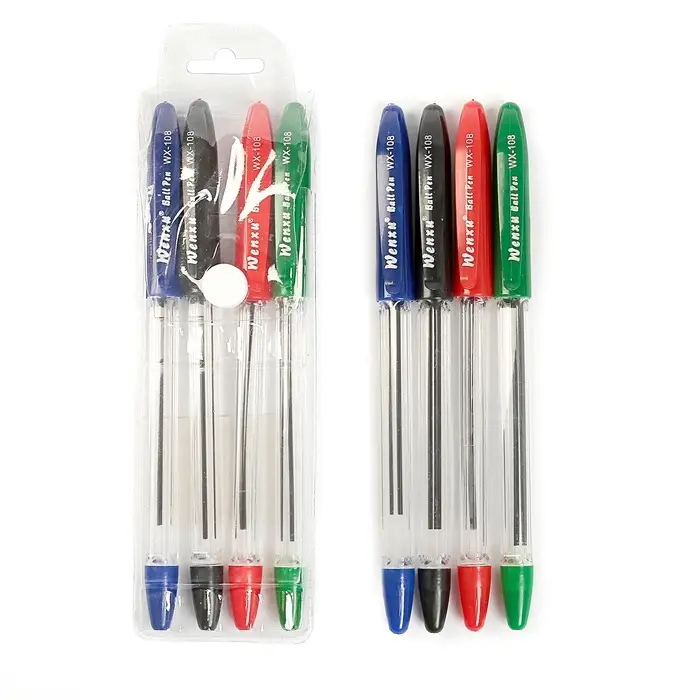 Набор шариковых ручек, 4 цвета, прозрачный корпус, в блистере